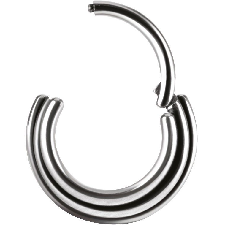 septum para la nariz de titanio grado implante astm f-136, con diseño de tres escalones. todos nuestros septum tienen el sistema de apertura clicker con bisagra, lo que te permite una instalación rápida y segura.