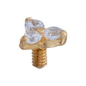 Top de oro de 18 kilates diseño trinity con 3 circones premium blancos para microdermal de 4.0mm